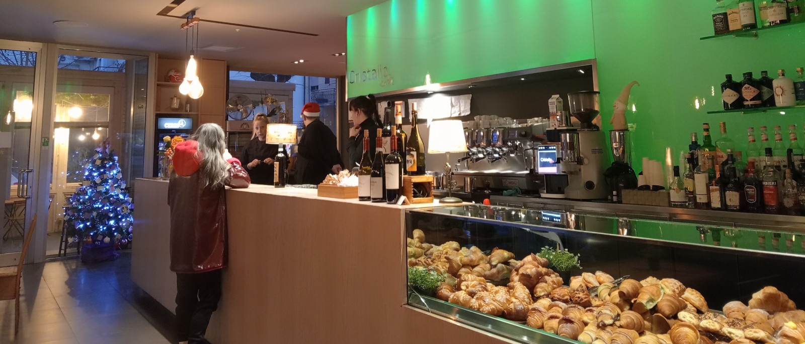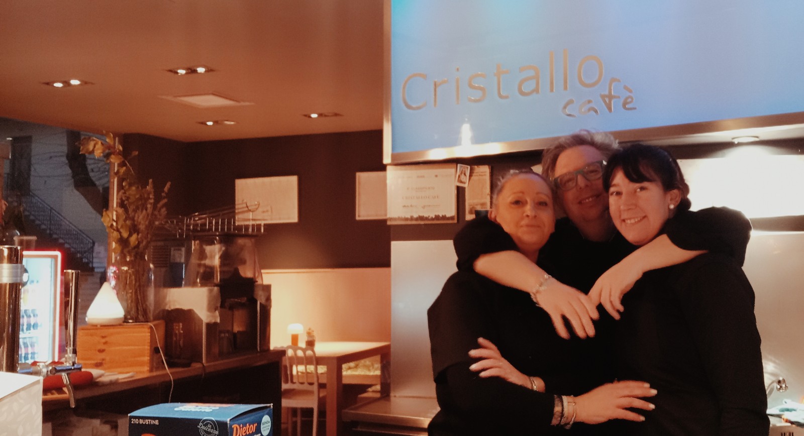 Passando per Camucia, verso le ore sei (si, così presto perché anche ieri sera, come sempre, al mio tradizionale locale di fine anno,"Il Bianchino", chiudono alle 21,30) stamani mi ha fatto piacere trovare aperto il Bar Cristallo, dove ho potuto gustarmi un buon caffè e scambiare quattro chiacchiere con Elisa, Constanza e Luca, i giovani baristi cortonesi nella foto, che dalle sei servono colazioni a chi passa per Camucia al ritorno dalle feste notturne oppure, come la signora Daniela ( nella foto in Gallery, al bancone mentre sorseggia il suo caffè) , che anche stamattina si è alzata presto per andare al lavoro.